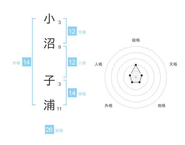 小沼 子浦さんを姓名の画数から五運を鑑定