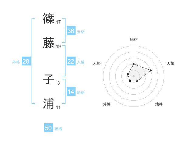 篠藤 子浦さんを姓名の画数から五運を鑑定