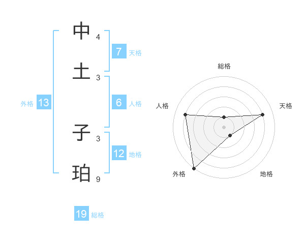 中土 子珀さんの外格は13画の5点!