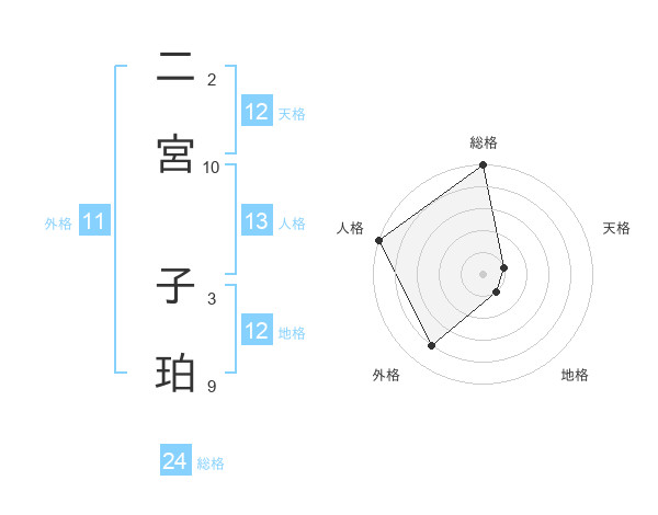 二宮 子珀さんを姓名の画数から五運を鑑定