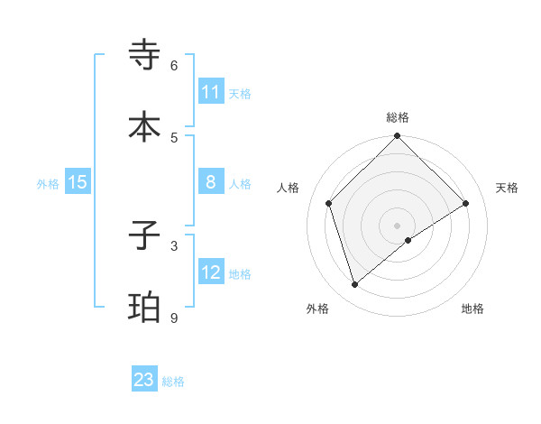 寺本 子珀さんの総格は23画の5点!