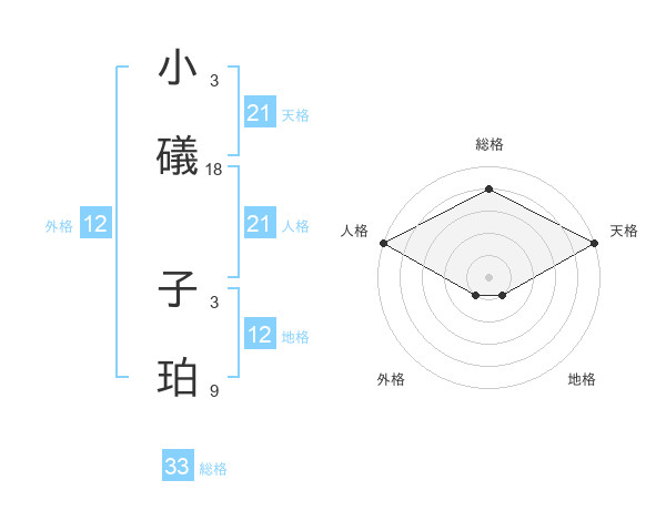 小礒 子珀さんを姓名の画数から五運を鑑定