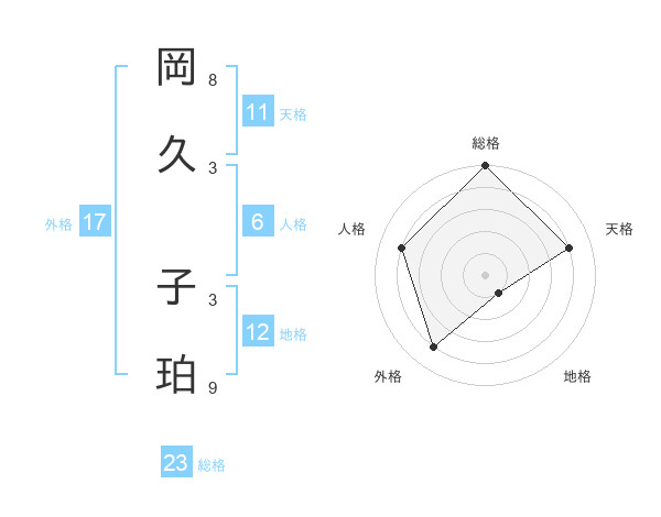 岡久 子珀さんの総格は23画の5点!