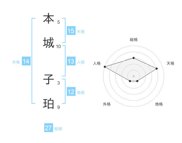 本城 子珀さんの総格は27画の3点!