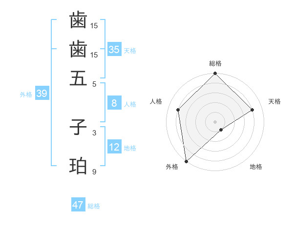 歯歯五 子珀さんの総格は47画の5点!