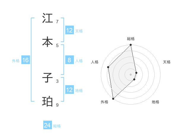 江本 子珀さんの総格は24画の5点!