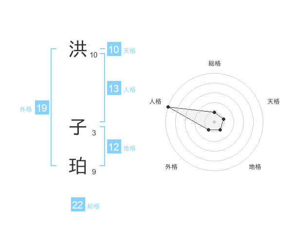 洪 子珀さんの総格は22画の1点!