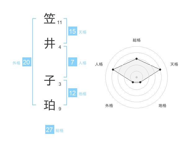 笠井 子珀さんを姓名の画数から五運を鑑定