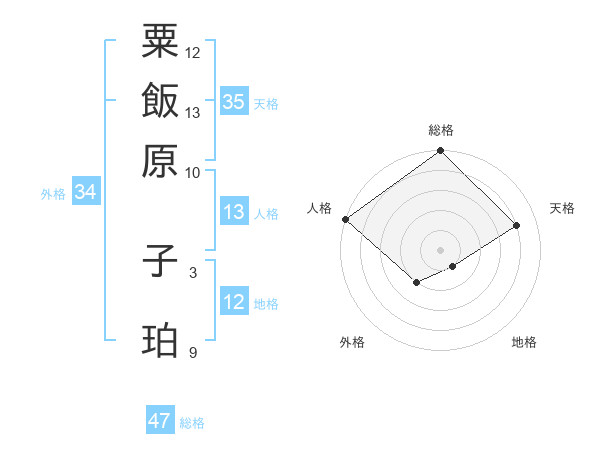 粟飯原 子珀さんの総格は47画の5点!