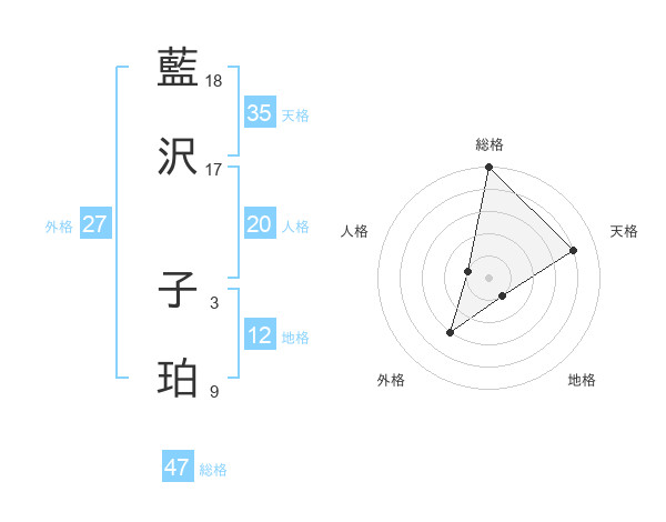 藍沢 子珀さんを姓名の画数から五運を鑑定
