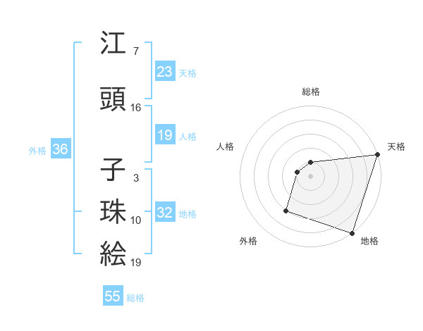江頭 子珠絵さんを姓名の画数から五運を鑑定