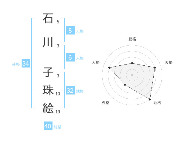 石川 子珠絵さんを姓名の画数から五運を鑑定