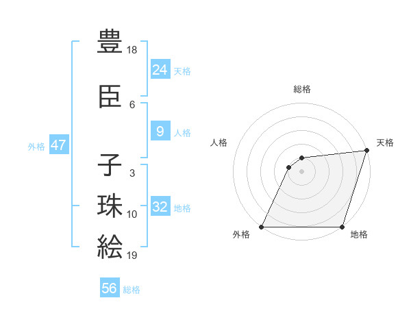 豊臣 子珠絵さんを姓名の画数から五運を鑑定