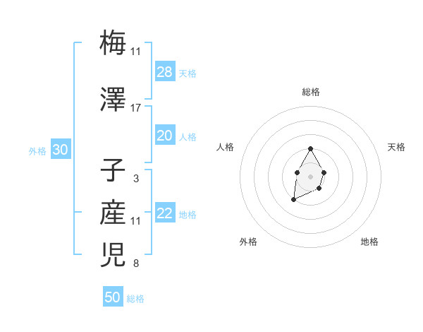 梅澤 子産児さんを姓名の画数から五運を鑑定
