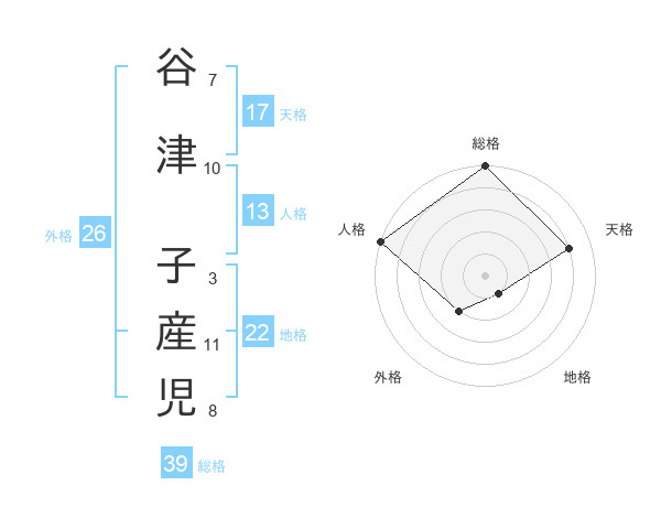 谷津 子産児さんを姓名の画数から五運を鑑定