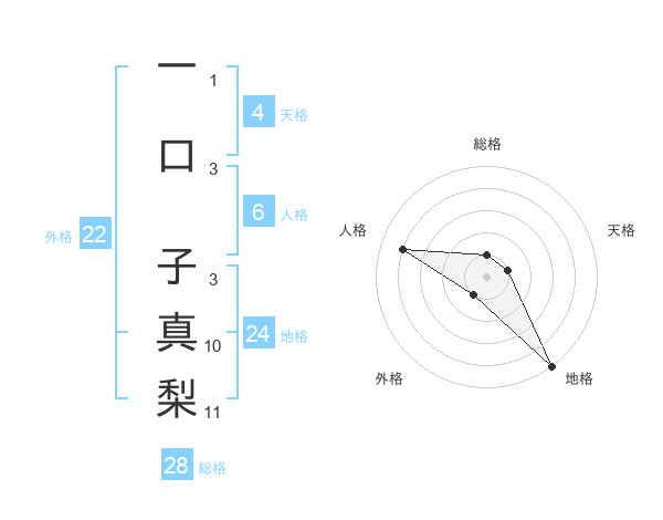 一口 子真梨さんの外格は22画の1点!