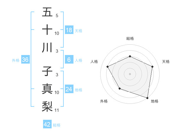 五十川 子真梨さんの総格は42画の3点!