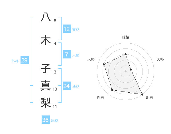 八木 子真梨さんの外格は29画の4点!