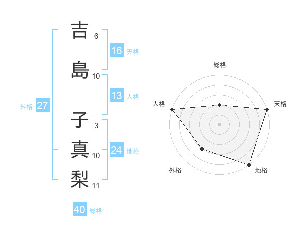 吉島 子真梨さんを姓名の画数から五運を鑑定