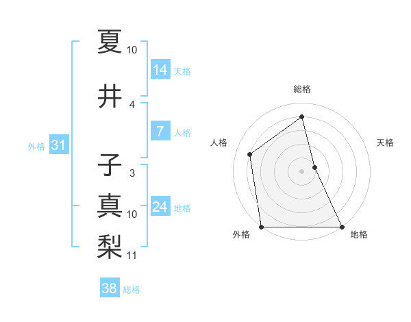 夏井 子真梨さんを姓名の画数から五運を鑑定