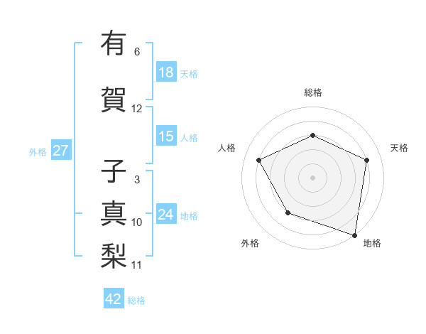 有賀 子真梨さんの総格は42画の3点!