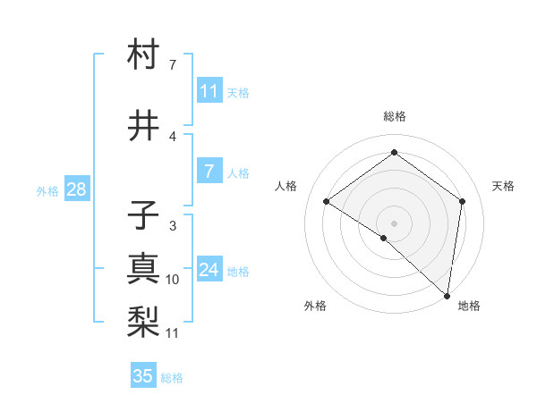 村井 子真梨さんを姓名の画数から五運を鑑定