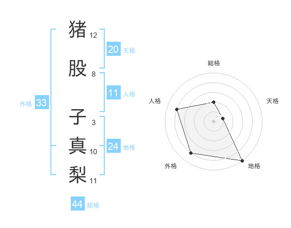 猪股 子真梨さんを姓名の画数から五運を鑑定
