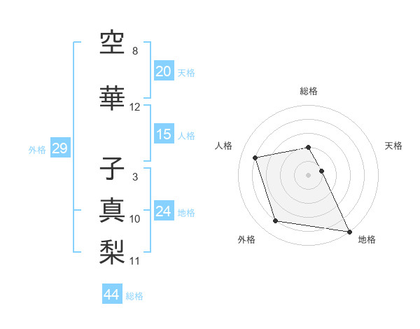 空華 子真梨さんを姓名の画数から五運を鑑定