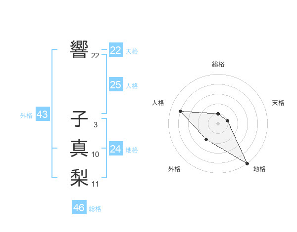 響 子真梨さんの天格は22画の1点!