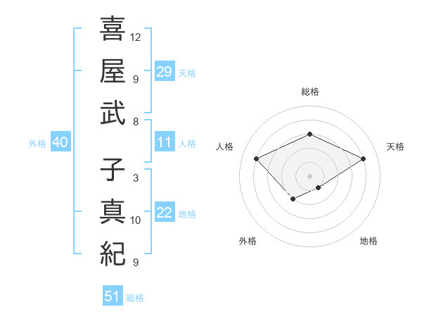 喜屋武 子真紀さんの総格は51画の3点!