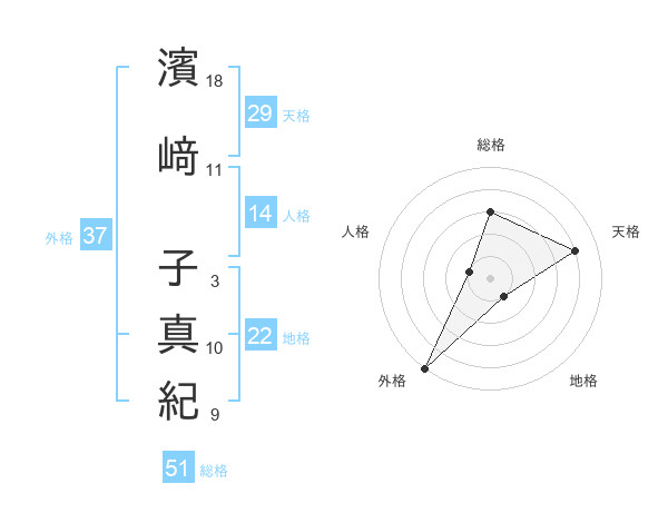 濱﨑 子真紀さんの総格は51画の3点!