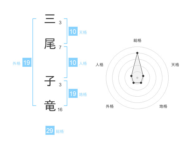 三尾 子竜さんを姓名の画数から五運を鑑定