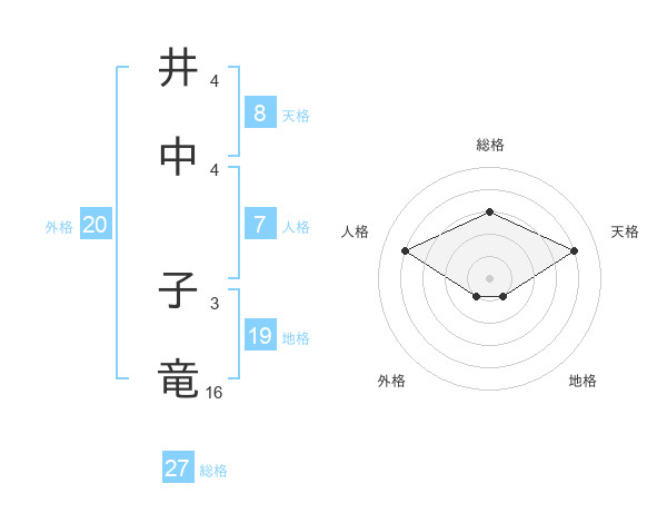 井中 子竜さんの総格は27画の3点!