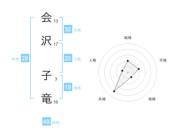 会沢 子竜さんを姓名の画数から五運を鑑定