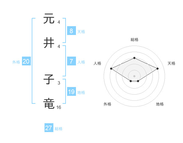 家系が持つ宿命的な運勢を表します。祖先から受け継いだ苗字ですので自分の力が及びません。家柄を象徴します。