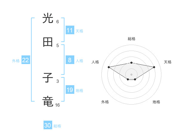 光田 子竜さんの外格は22画の1点!