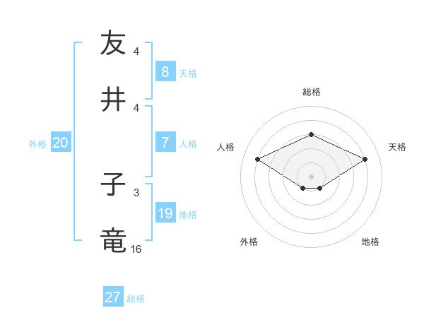 友井 子竜さんの天格は8画の4点!
