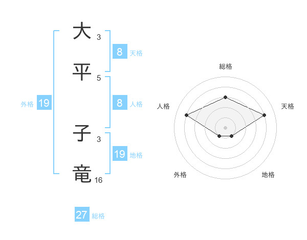 大平 子竜さんの総格は27画の3点!