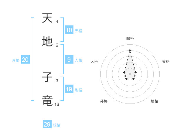 天地 子竜さんの総格は29画の4点!