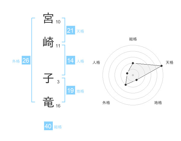 宮崎 子竜さんを姓名の画数から五運を鑑定