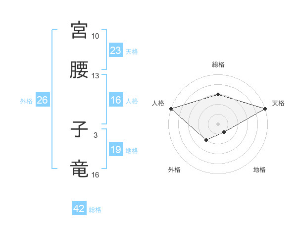 宮腰 子竜さんを姓名の画数から五運を鑑定