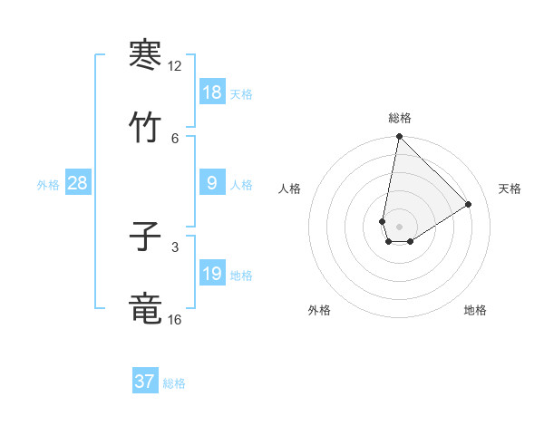 寒竹 子竜さんの総格は37画の5点!