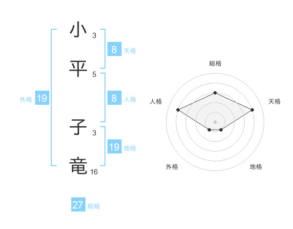 小平 子竜さんの総格は27画の3点!