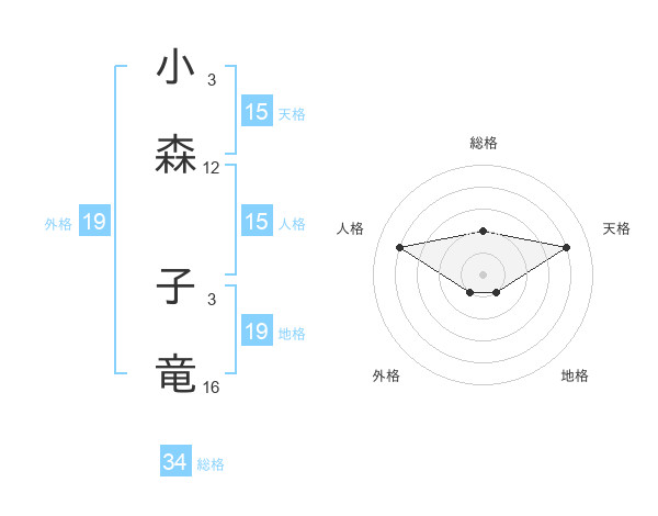 小森 子竜さんの天格は15画の4点!