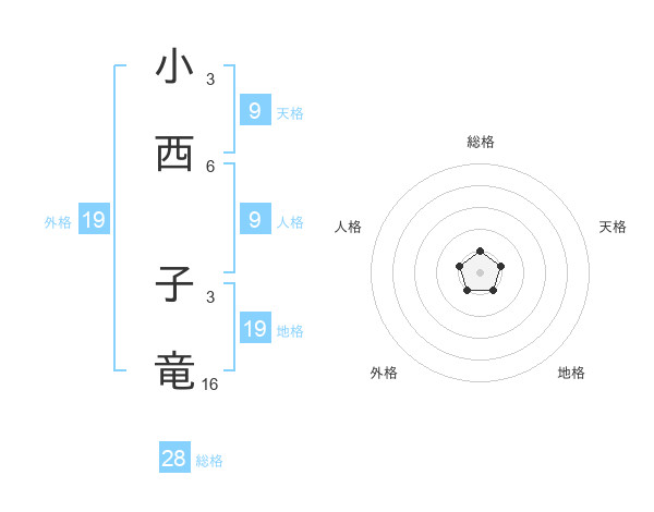 小西 子竜さんの総格は28画の1点!