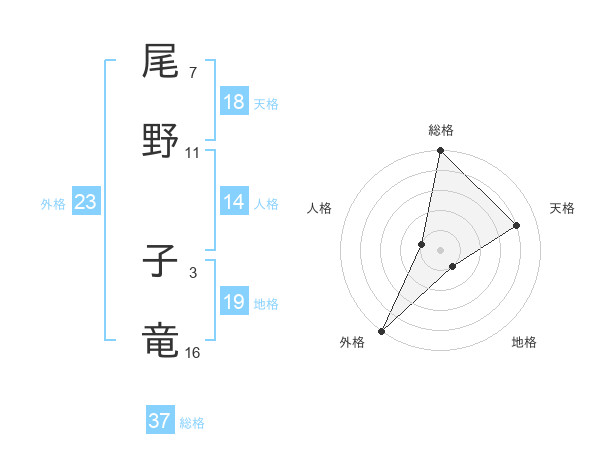 尾野 子竜さんの総格は37画の5点!