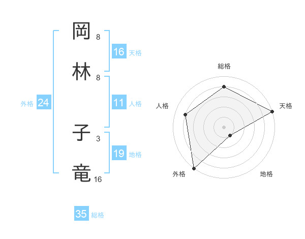 岡林 子竜さんを姓名の画数から五運を鑑定