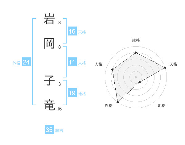 岩岡 子竜さんの天格は16画の5点!