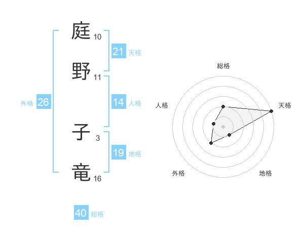 庭野 子竜さんの天格は21画の5点!