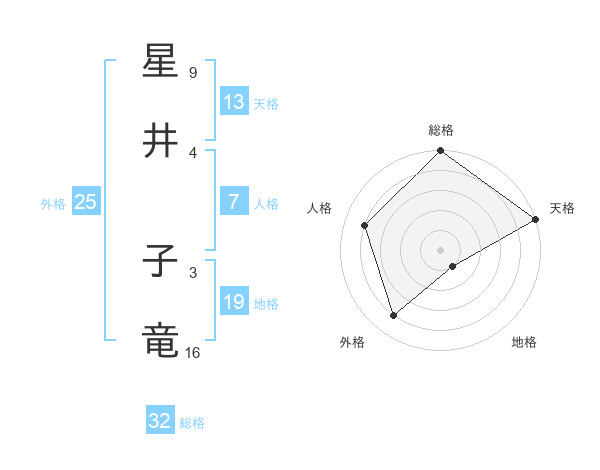 星井 子竜さんの天格は13画の5点!